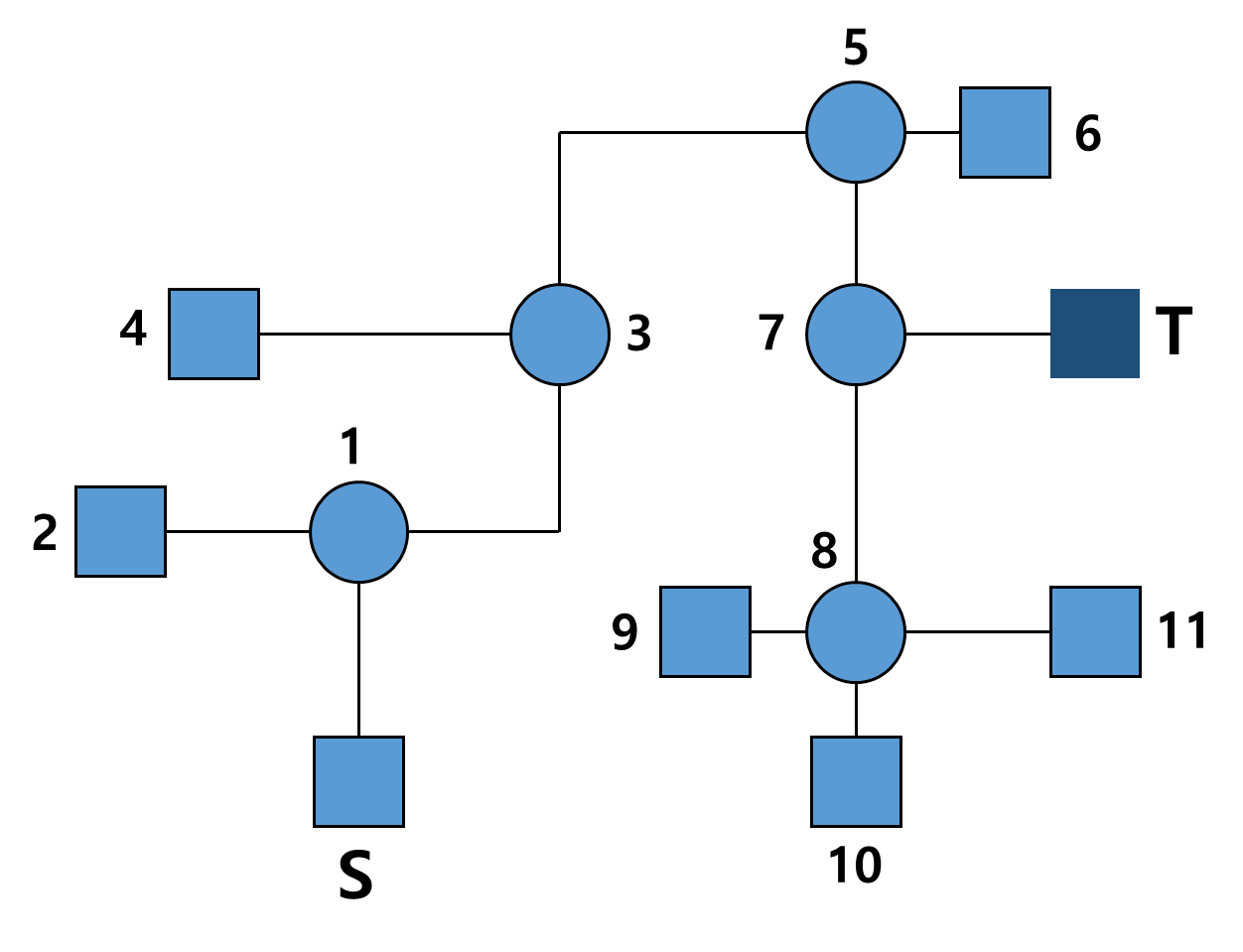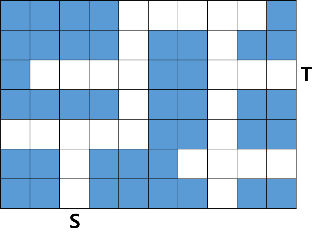- 이렇게 생긴 미로가 있을 때 S는 시작 지점이고, T는 목표 지점임.