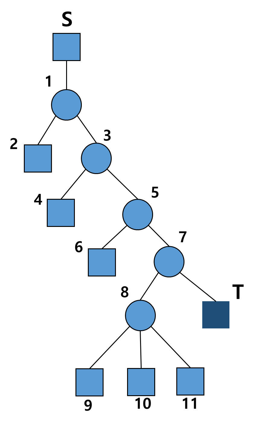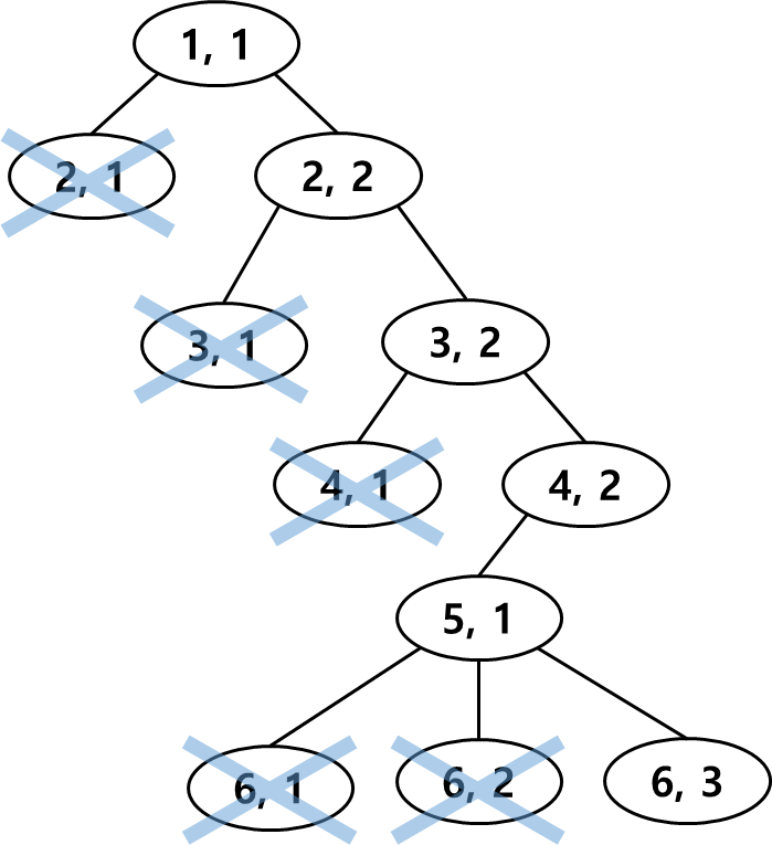 - 그림에서 검은색으로 칠해진 경우들. 한정 분기는 이런 선택을 해야 할 차례가 오면 그냥 넘김. (가지치기)