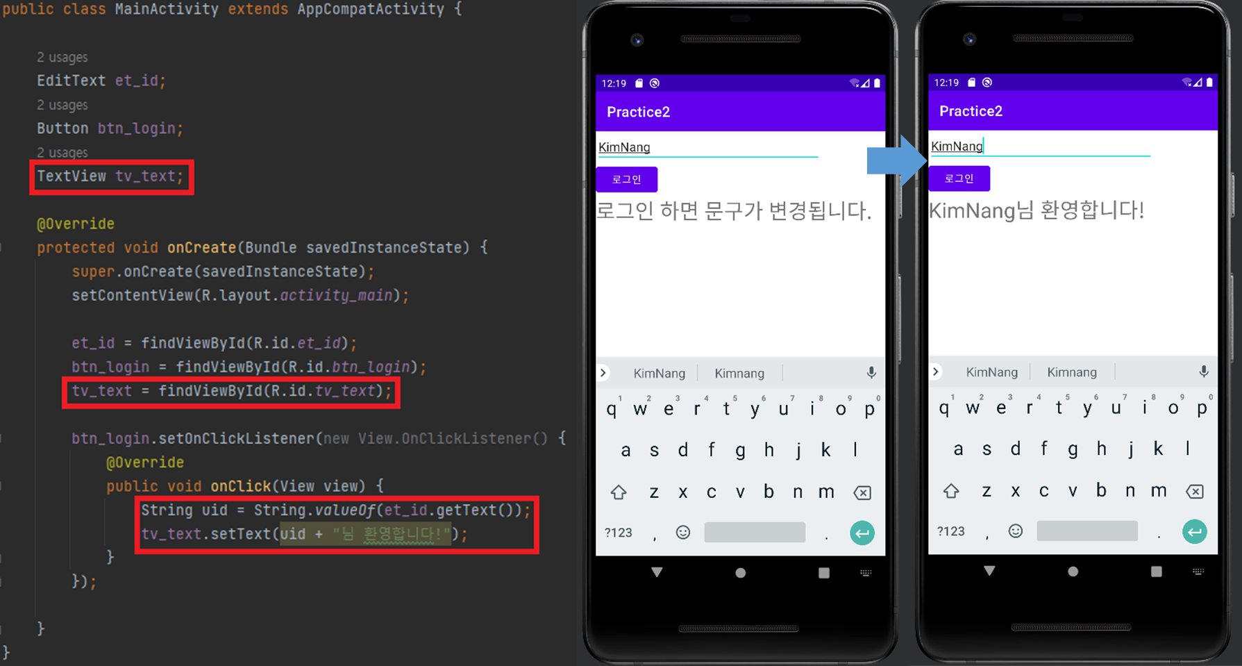 tv_text.setText(uid + "님 환영합니다!");