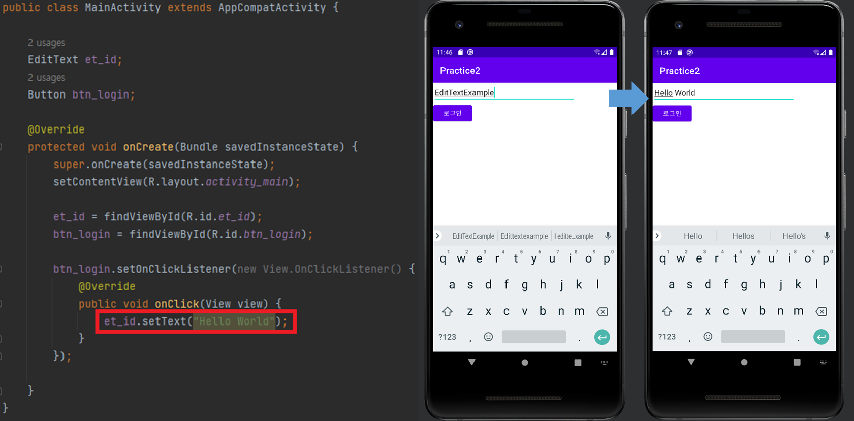 et_id.setText("Hello World");