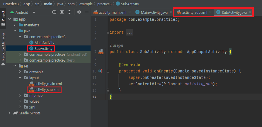 생성하게 되면 이런식으로 액티비티가 더 생긴 것을 확인할 수 있습니다.