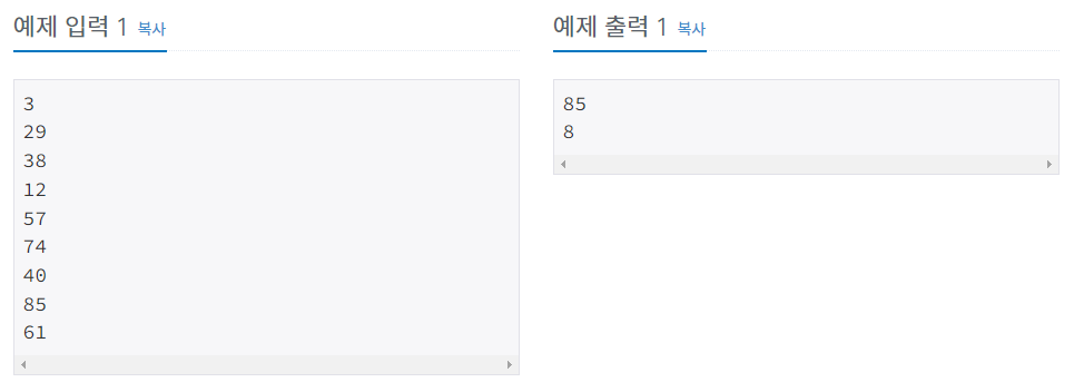이 주어지면, 이들 중 최댓값은 85이고, 이 값은 8번째 수이다.