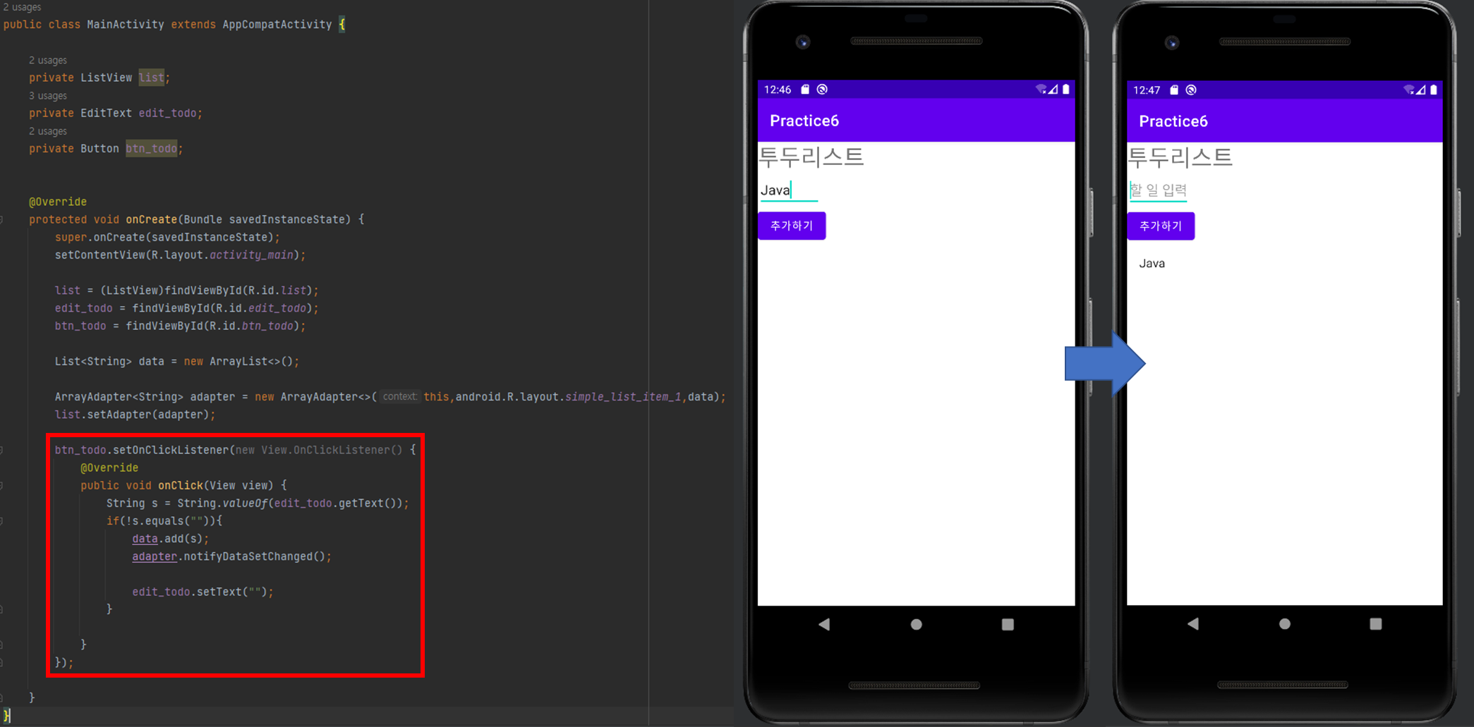 ListView 응용하기 - 간단한 Todo List