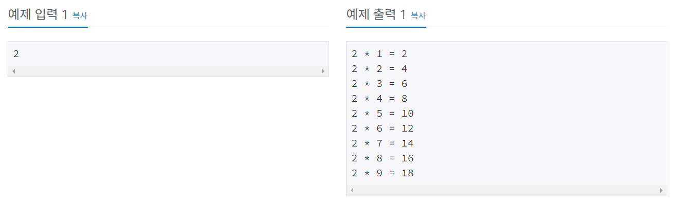 N을 입력받은 뒤, 구구단 N단을 출력하는 프로그램을 작성하시오. 출력 형식에 맞춰서 출력하면 된다.