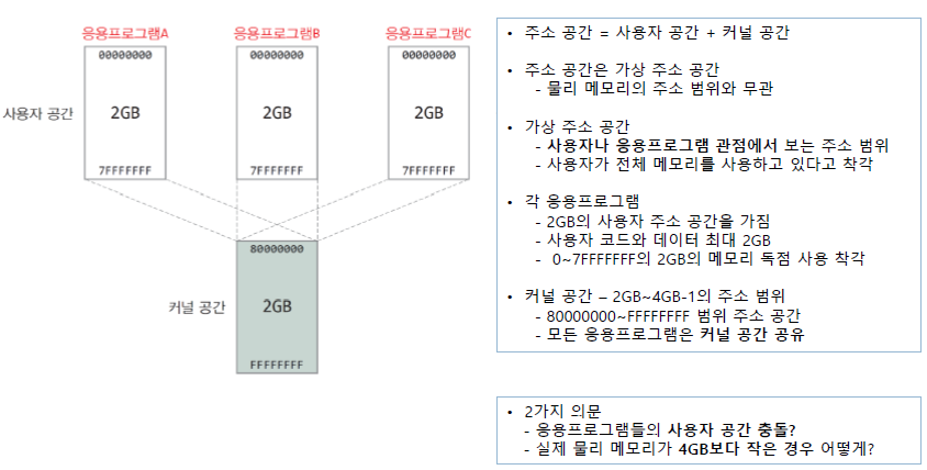 - CPU의 액세스 범위 : 2³²개의 서로 다른 주소(0 ~ 2³²-1 번지)