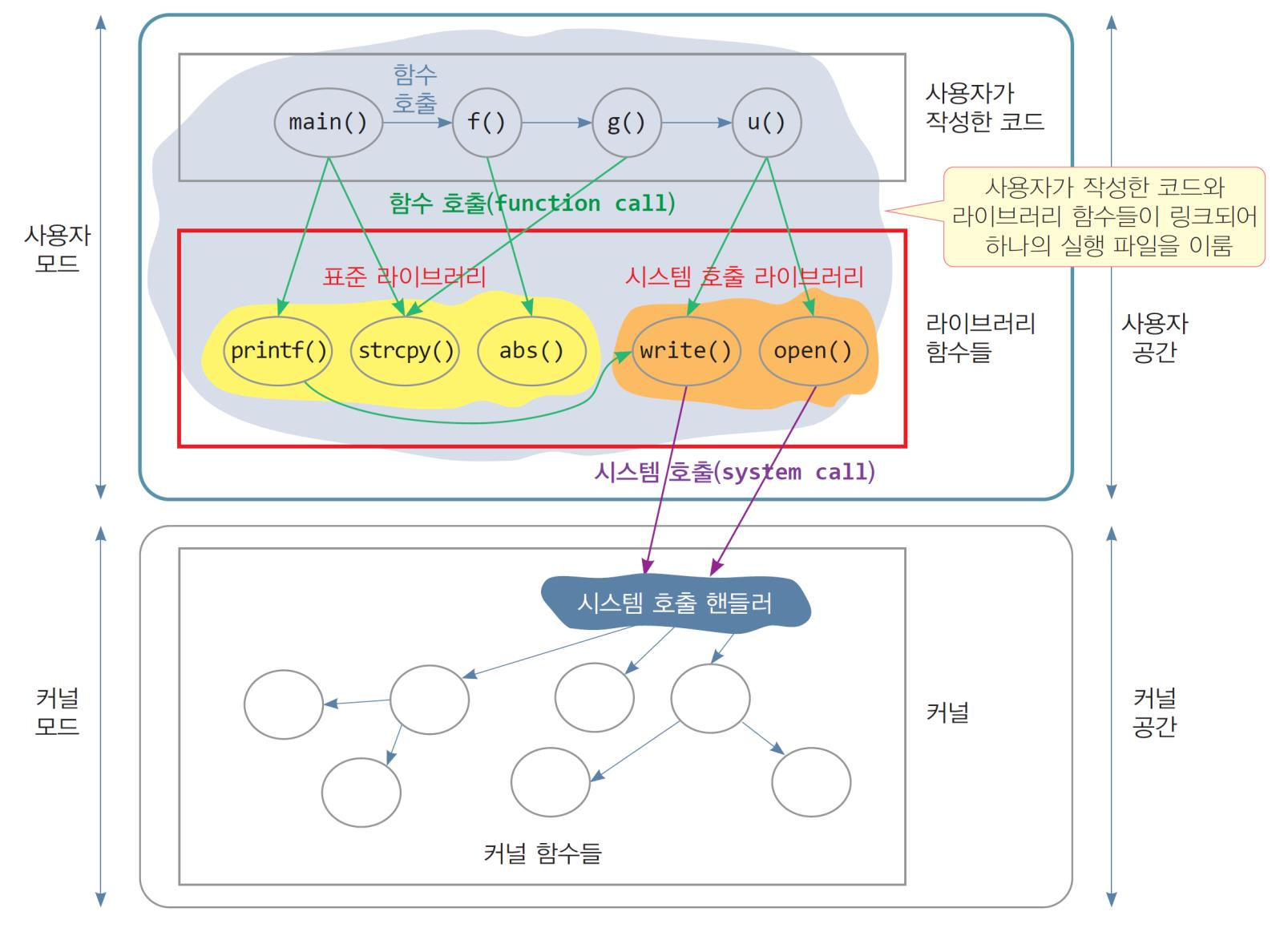 | 메모리 영역 | 사용자 영역 코드에서 사용자 영역의 함수 호출 |