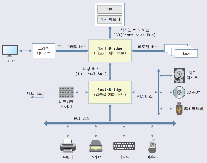 - CPU, 캐시 메모리, 메모리 등 빠른 하드웨어들 사이에 데이터 전송