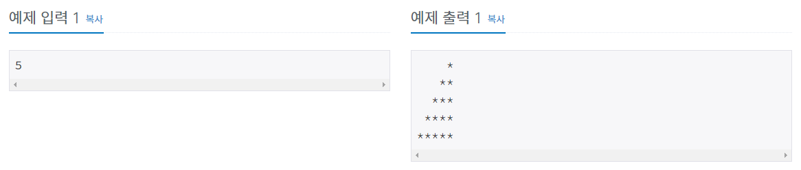 하지만, 오른쪽을 기준으로 정렬한 별(예제 참고)을 출력하시오.