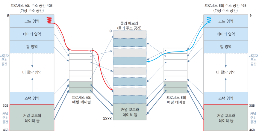 - 프로세스 주소 공간은 논리 공간 (가상 공간) 가상 공간 ≠ 가상 메모리