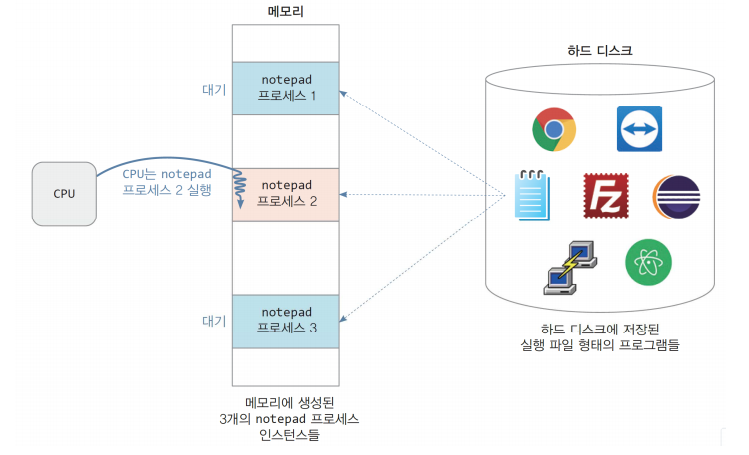 - 프로그램 실행 시 마다 독립된 프로세스 생성 -> 프로세스들을 프로그램의 다중 인스턴스라고 부름