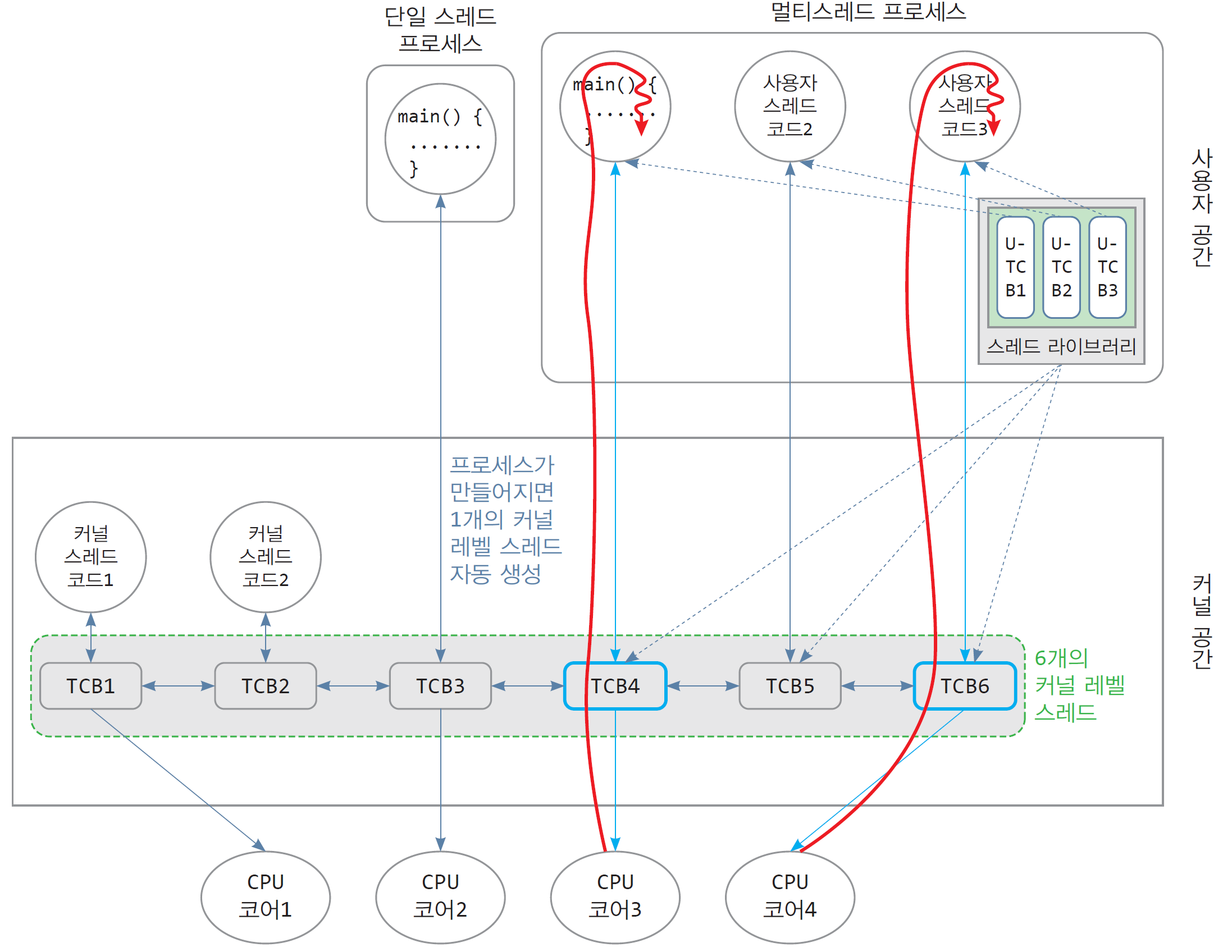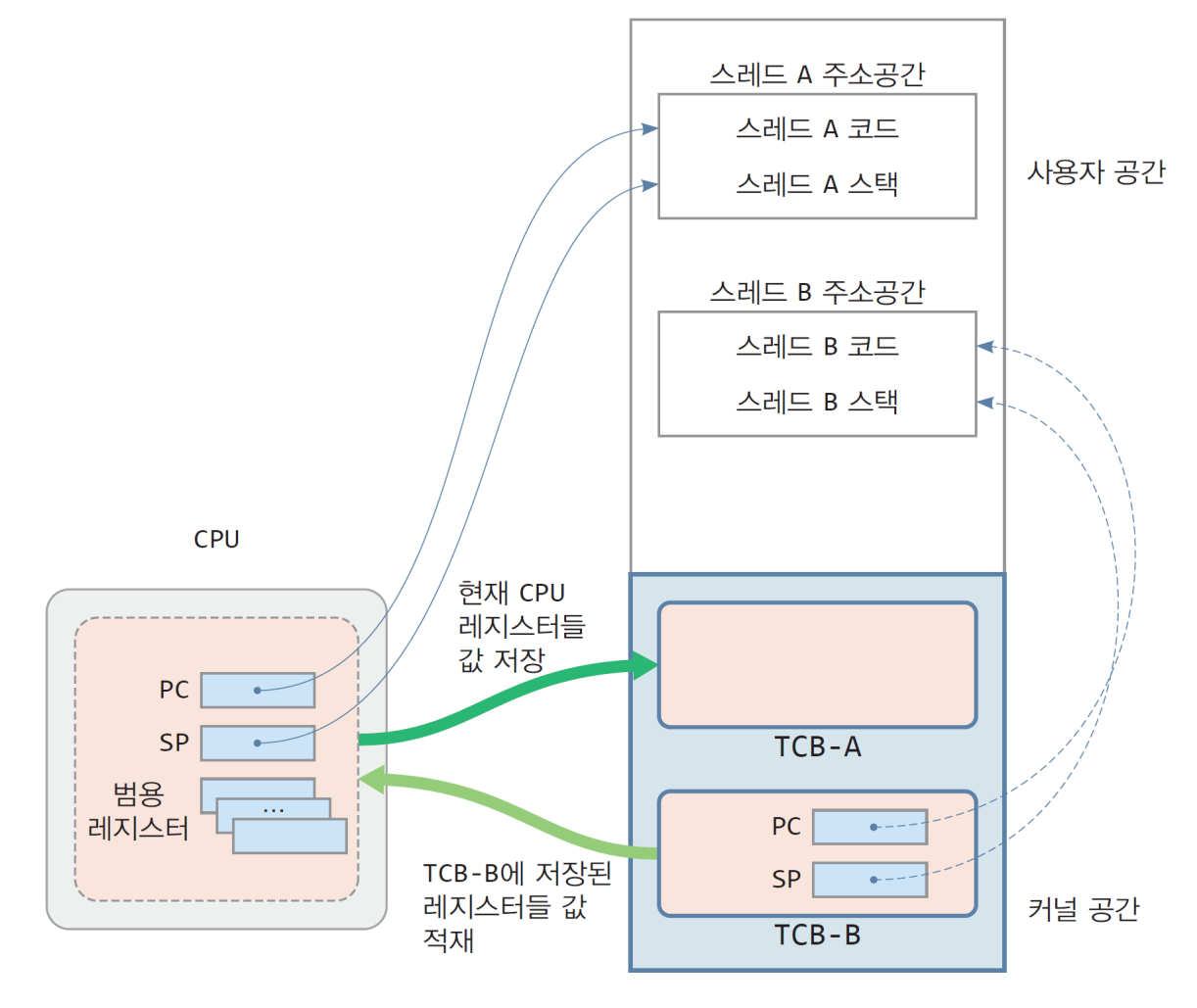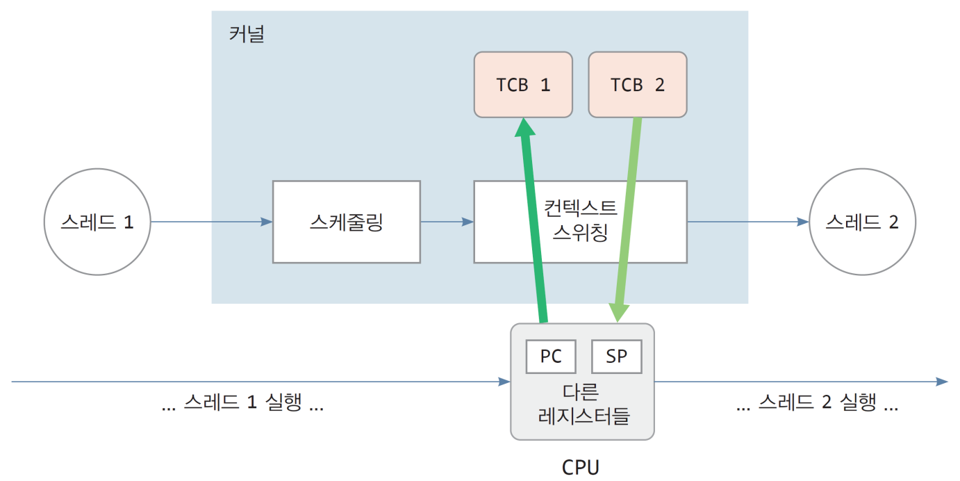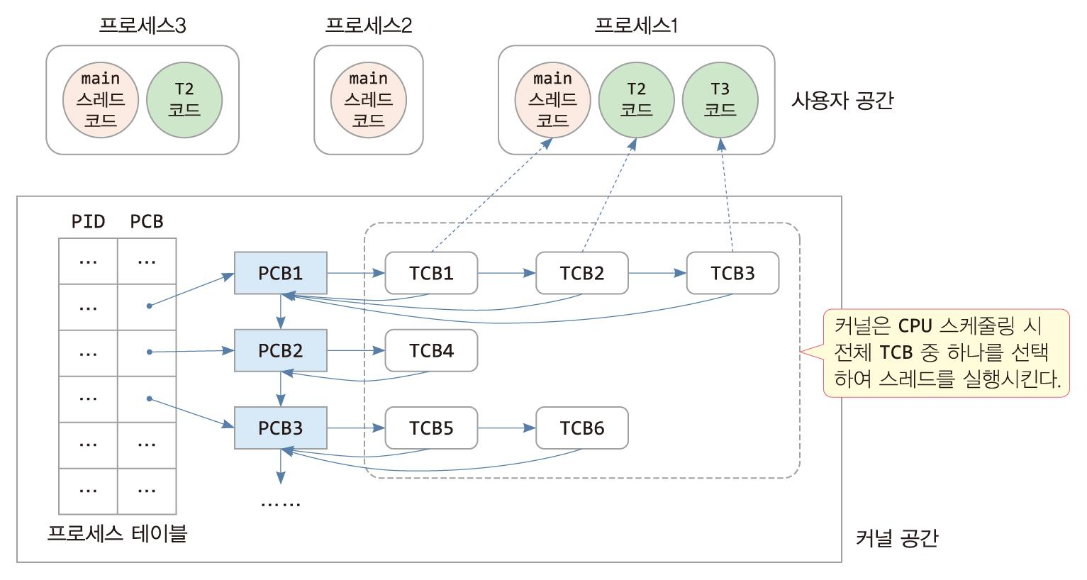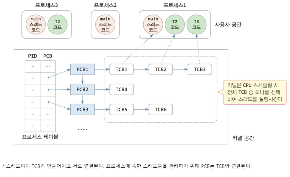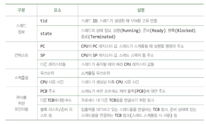 - 운영체제는 TCB 리스트로 전체 스레드 관리