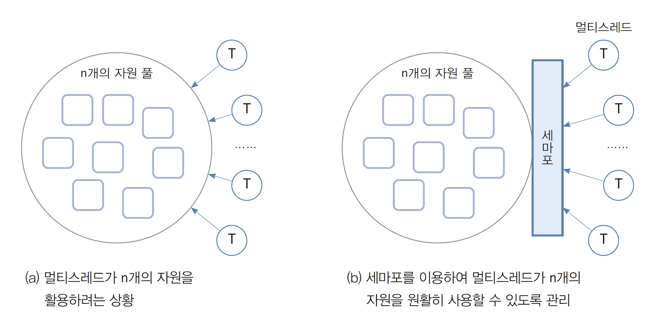 - n개의 공유 자원을 다수 스레드가 공유하여 사용하도록 돕는 자원 관리 기법 ★