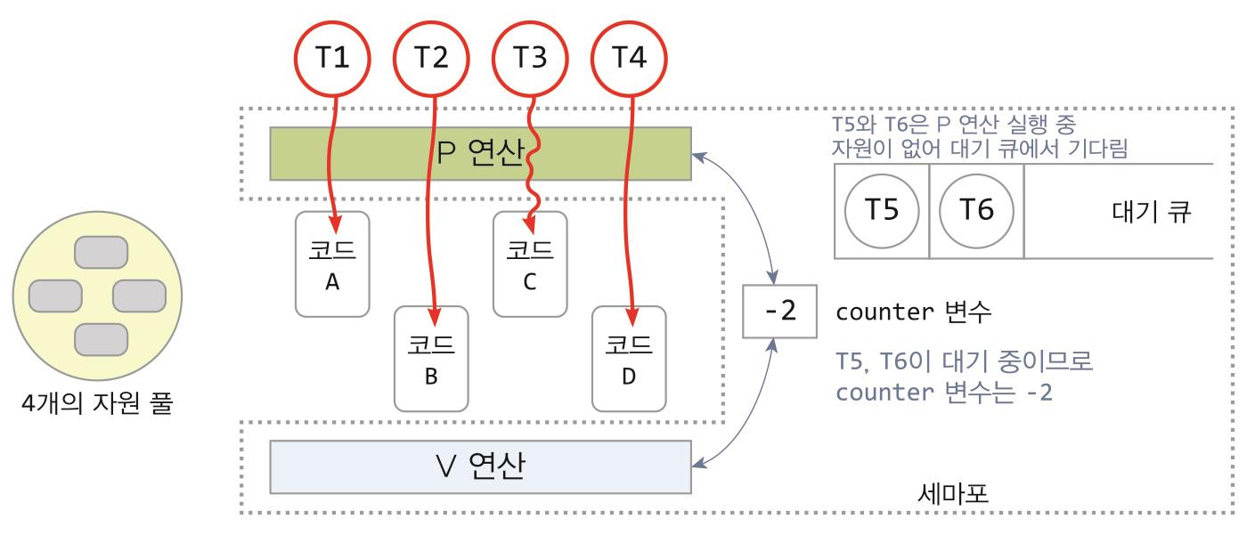 - P 연산 : counter--, 대기 큐에서 잠자기
