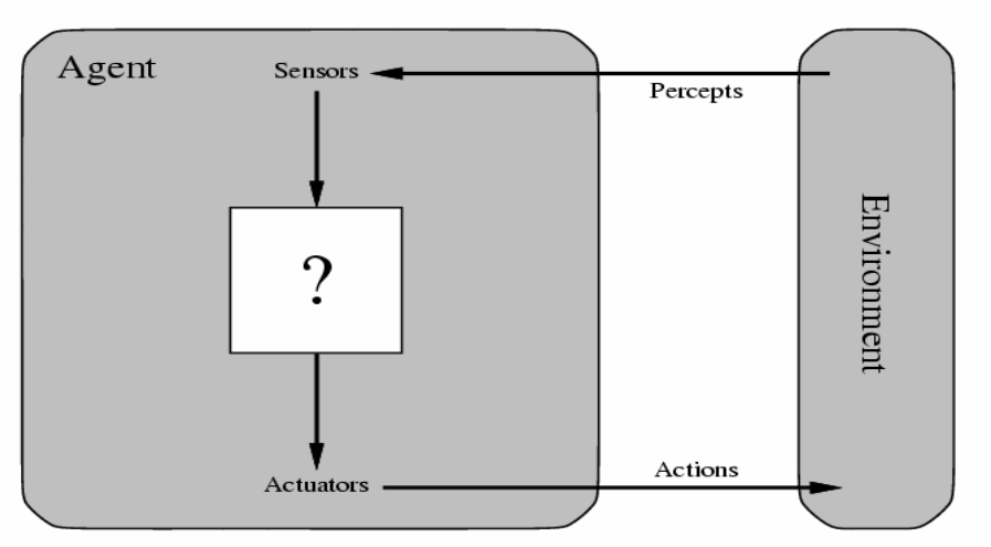 - Sensor를 통해 환경(environment)를 인식하고, 동작(action)을 수행할 수 있는 작동기(Actuactors)를 통해 인식된 환경에 대한 동작을 수행하는 개체