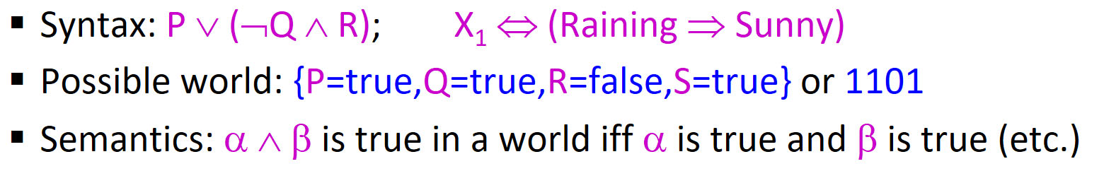 - e.g. A ∨ B, C (True을 만들 수 있는 모델이 하나라도 있는 논리식)