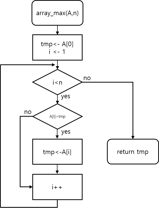 ex) 최대값을 찾는 알고리즘을 자연어로 표현