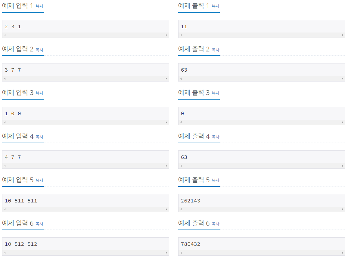 첫째 줄에 정수 N, r, c가 주어진다.