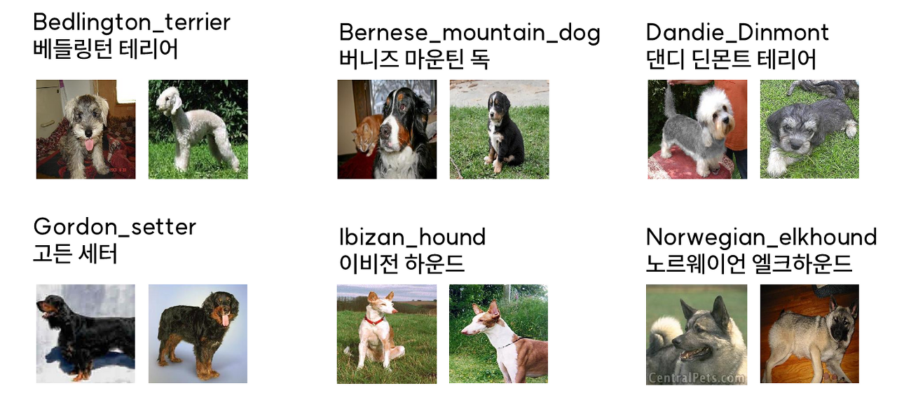 - 이 데이터셋에는 6종류의 개 이미지가 있음