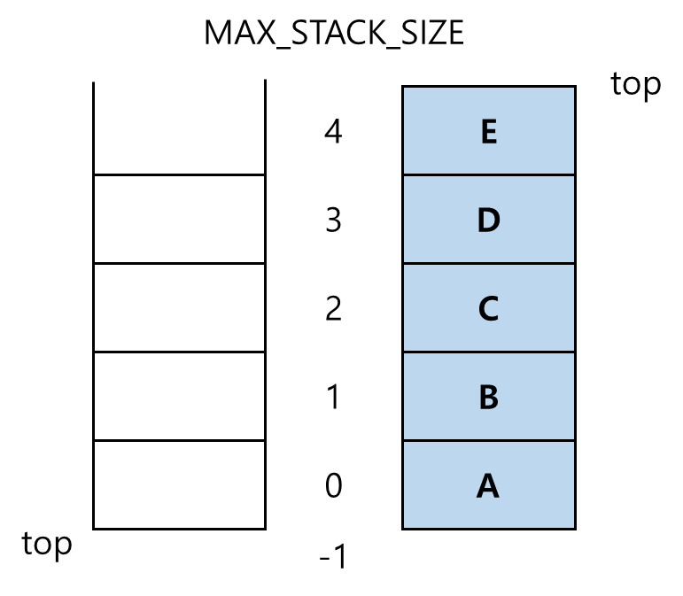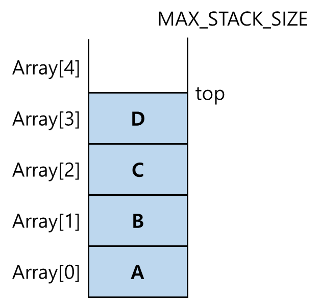 - 이것은 top 변수를 통해 알수있음. -1이면 공백 상태, top = MAX_STACK_SIZE면 포화상태
