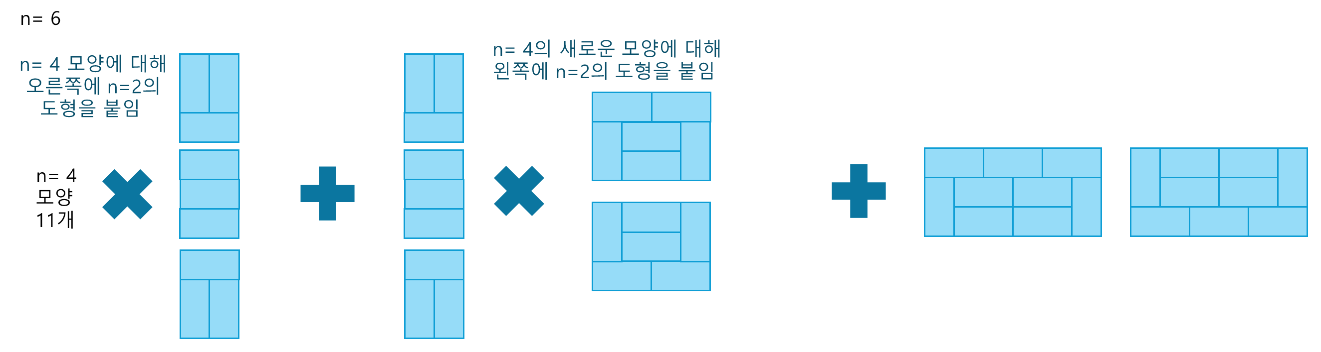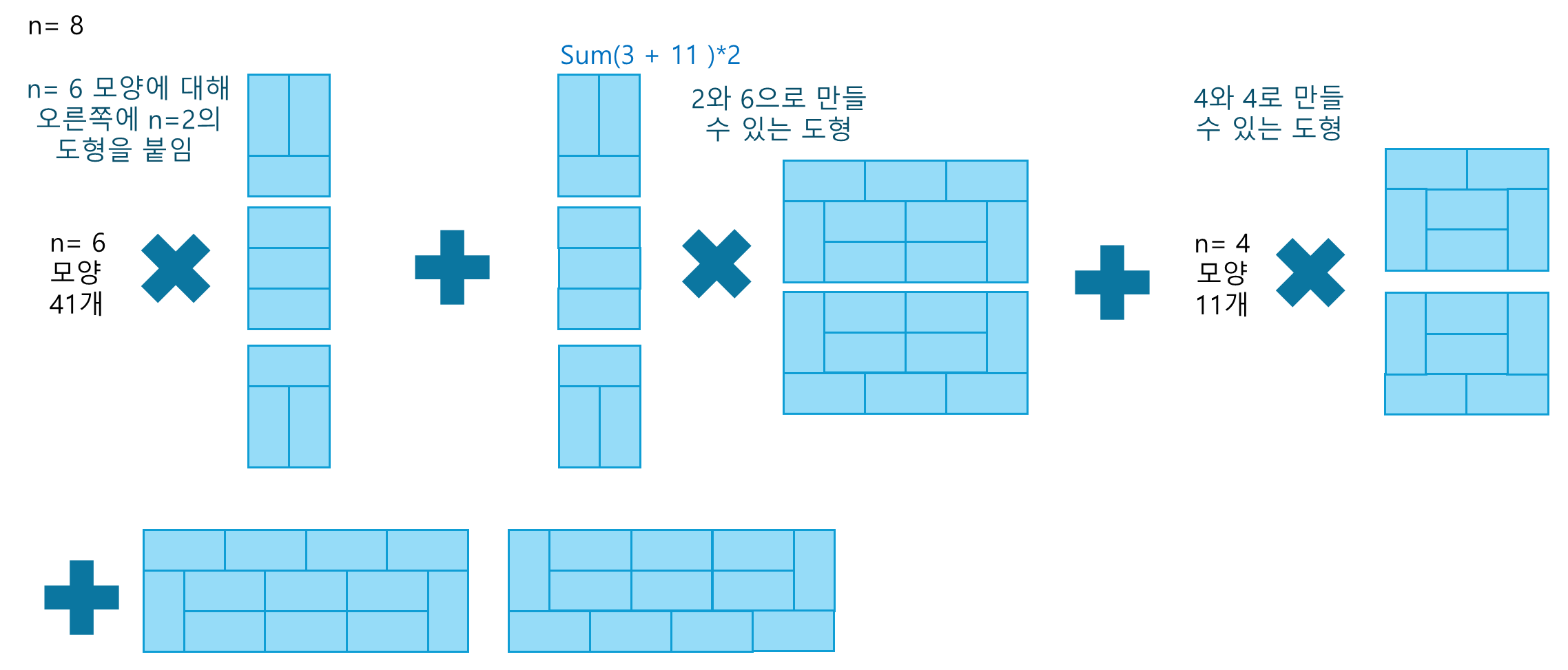 그리고 n이하의 특정 x사이즈 모양의 상자에 대해, 그 왼쪽에 n - x 크기 도형을 붙이는 형태가 만들어집니다.