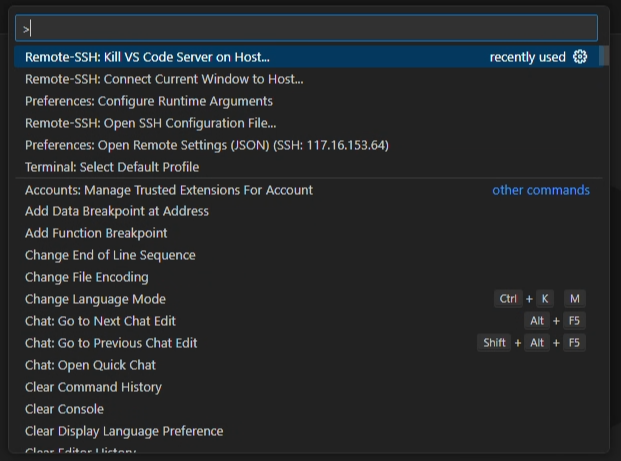 2. Remote-SSH : Kill VS Code Server on Host... 를 검색한 후 클릭합니다.