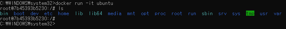 - -it 옵션 : 대화형 모드로 진입, 직접 작업 가능함