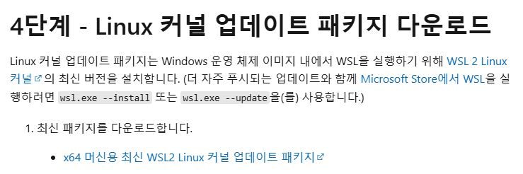 - https://learn.microsoft.com/ko-kr/windows/wsl/install-manual 페이지 접속