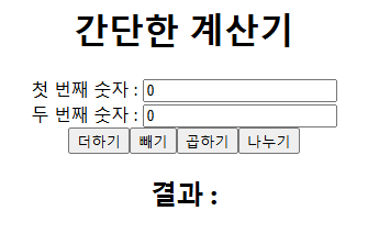 - 웹브라우저에 프론트엔드가 표시되면 화면에 두 개의 숫자를 입력하고 계산 버튼 클릭