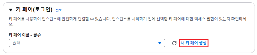 - 새 키 페어 생성을 클릭