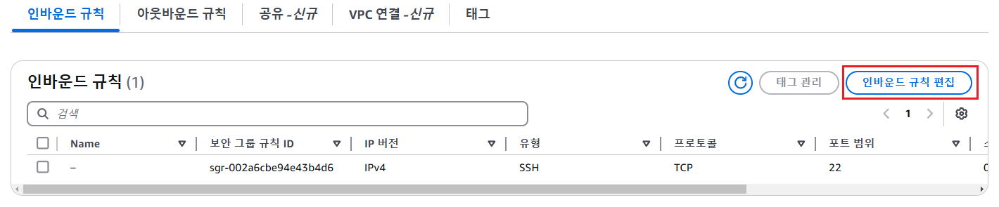 - 인바운드 규칙 편집을 선택함