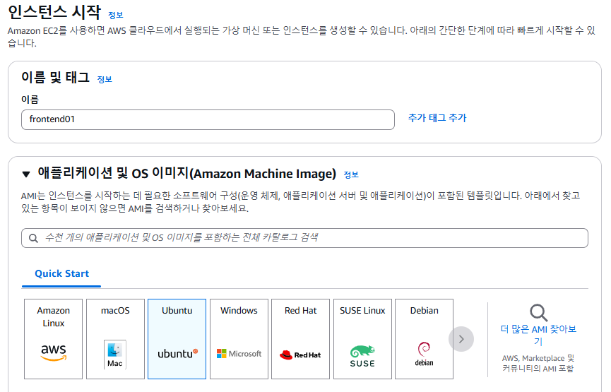 - EC2의 이름과 Ubuntu 리눅스를 선택함