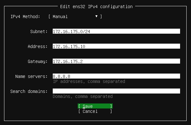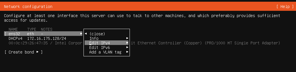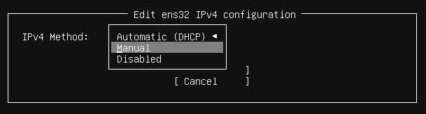 - ens32에서 엔터 누르고 IPv4설정으로 넘어감