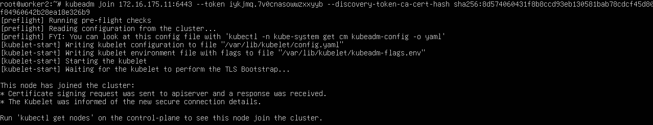 - 실행 결과 마지막에 'Run kubectl get nodes' on the control-plane to see this node join the cluster' 라는 문구가 나타나면 정상적으로 설치된 것
