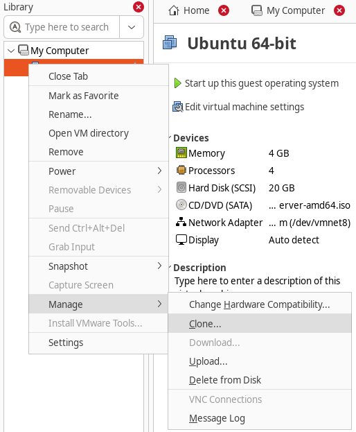 - 우클릭 후 'Manage - Clone'을 클릭함