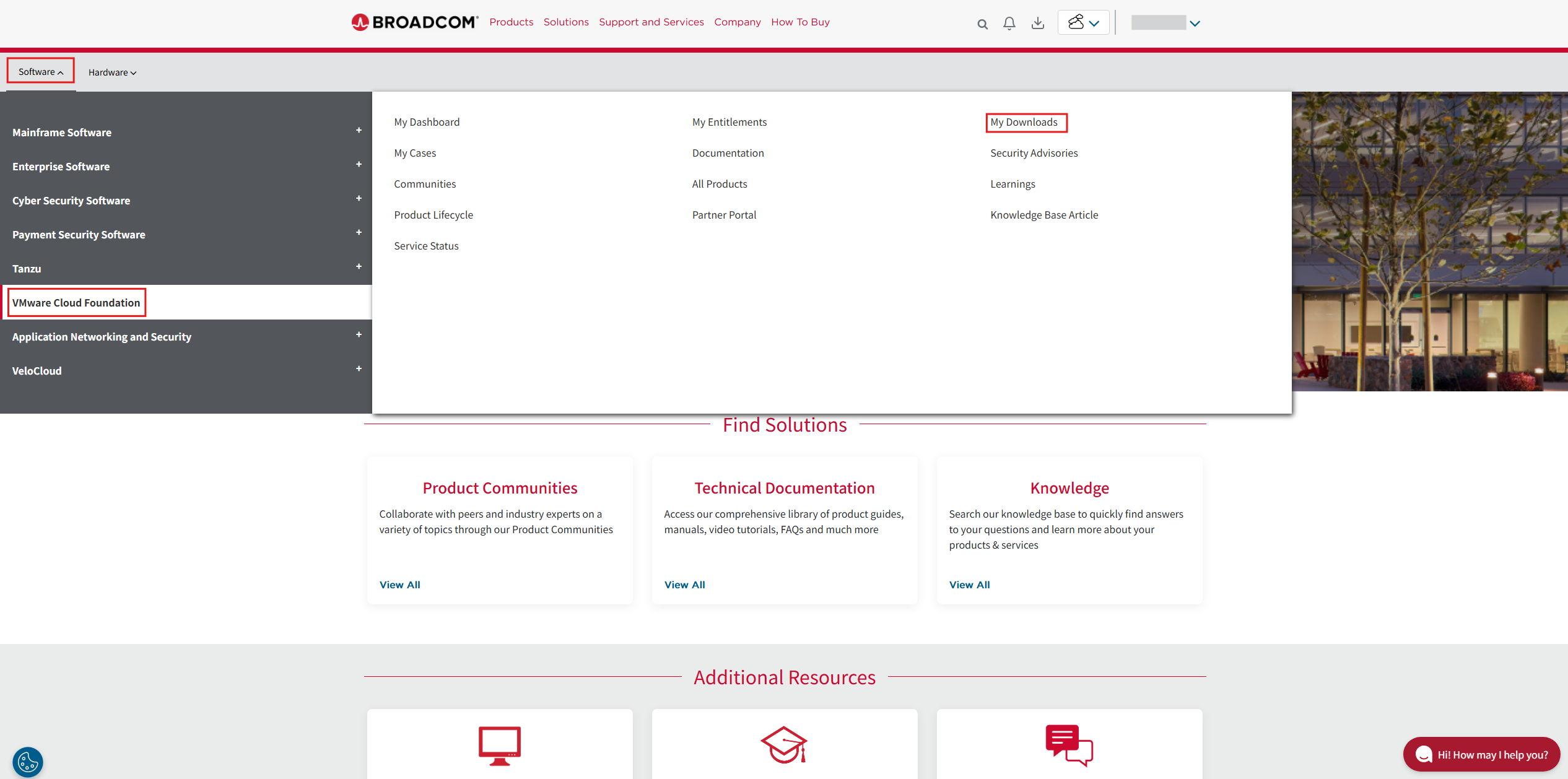 https://www.broadcom.com/ - Software - VMware Cloud Foundation - My Downloads를 통해 이동함