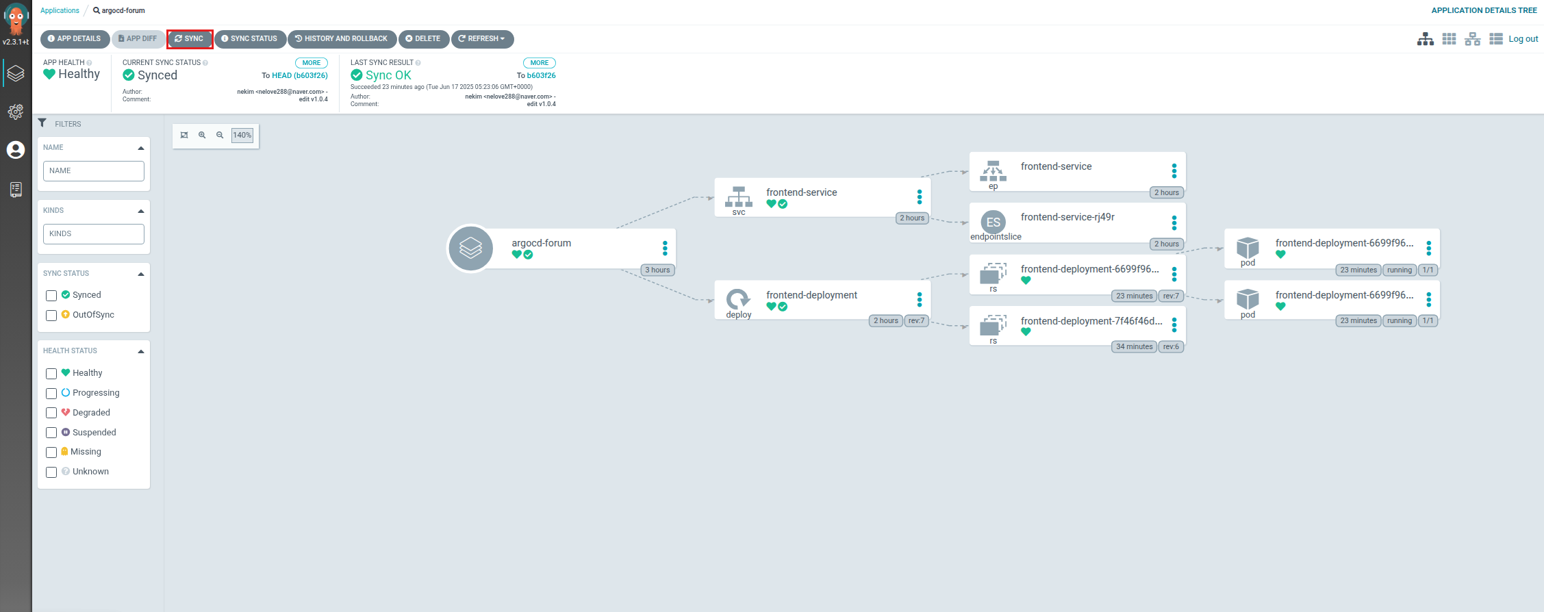 - SYNC 버튼을 통해 적용이 됐는지 확인함