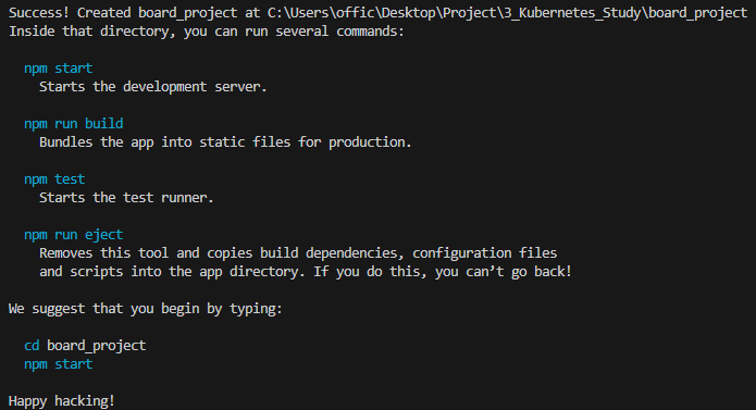 - 설치가 완료되면 해당 이름으로 프로젝트가 생성됨