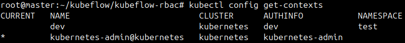 kubectl config set-context dev \ --cluster=kubernetes \ --user=dev \ --namespace=test
