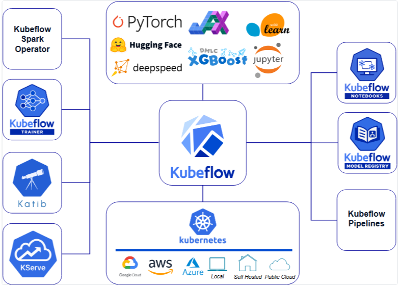 - AI 워크플로우 지원 : AI 수명 주기의 모든 단계(데이터 준비, 학습, 배포 등)를 지원하는 쿠버네티스 기반 프로젝트들로 구성됨