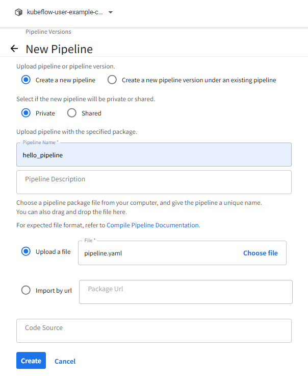 - .upload_pipeline_version() : 위 .upload_pipeline()과 동일한 기능. 단 버전을 지정해서 업로드