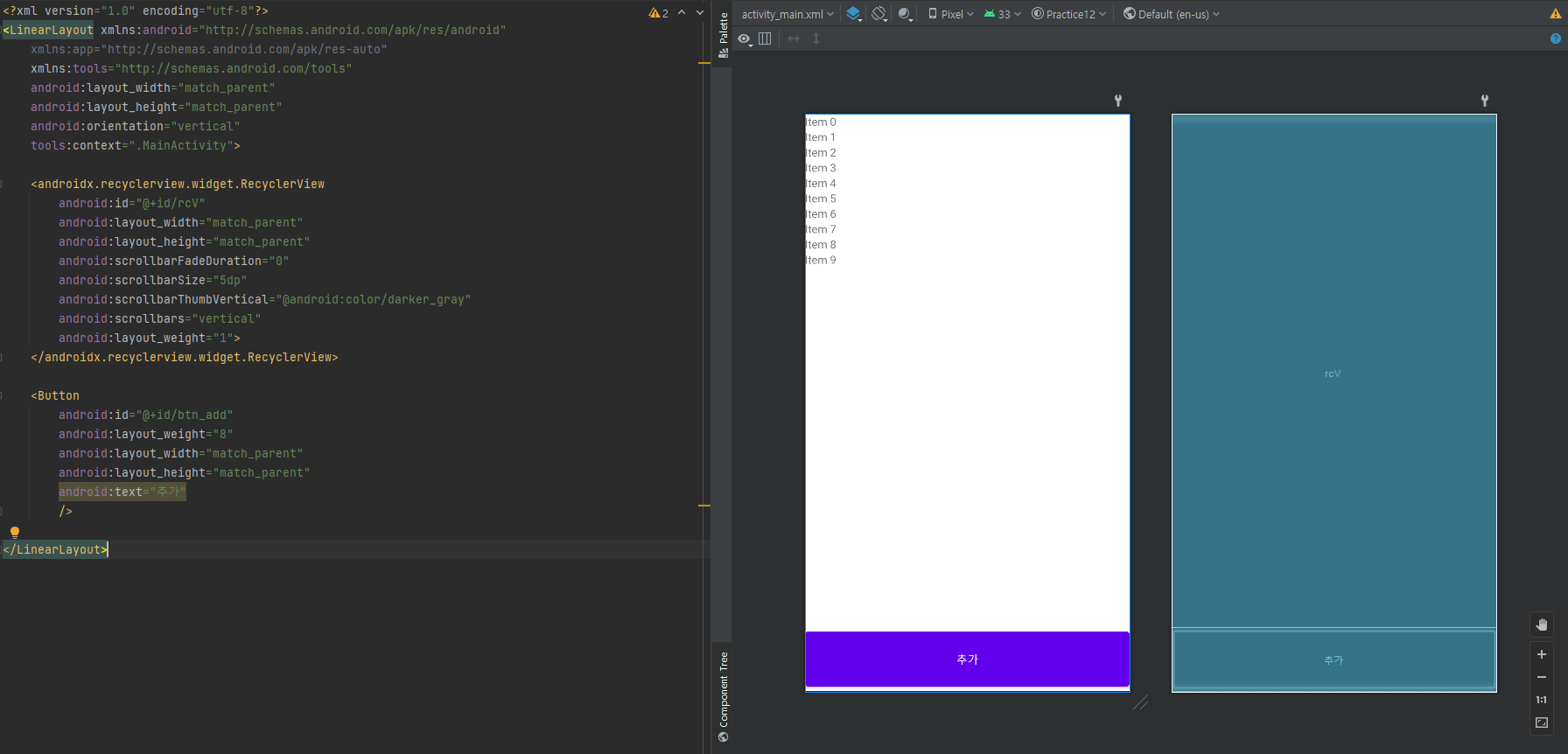 이정도하면 Adapter쪽에는 구현이 되었습니다. 이제 마지막으로 activity_main 부분을 구현해보겠습니다.