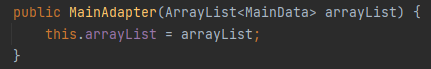 그리고 아까 만든 MainAdapter를 가지고와서 arrayList에 담아줍니다. 그 담아져있는 데이터의 Adapter를 recyclerView에 세팅합니다.