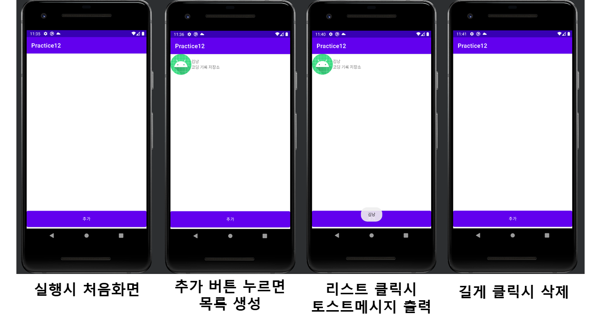 이렇게 작성하면 recyclerview 화면은 완성되었습니다.