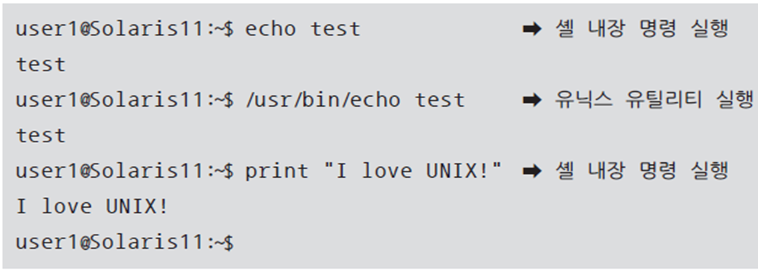 셸 내장 명령 실행 - 단순 셸 가지고 명령 / 유닉스 유틸리티 실행 - 어떤 프로그램, 서버조작 프로그램 조작, 유틸리티 프로그램