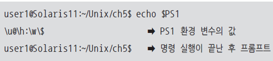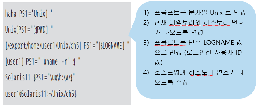 - 환경 변수 PS1에 저장된 값을 프롬프트로 사용