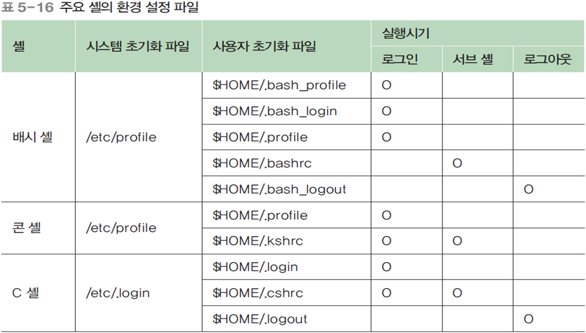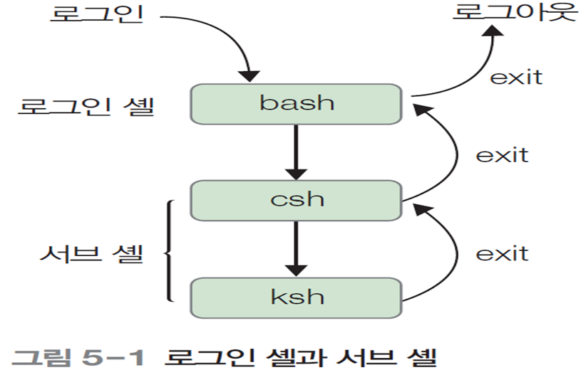 - 로그인 셸 : 사용자가 로그인 직후 자동 생성되는 셸