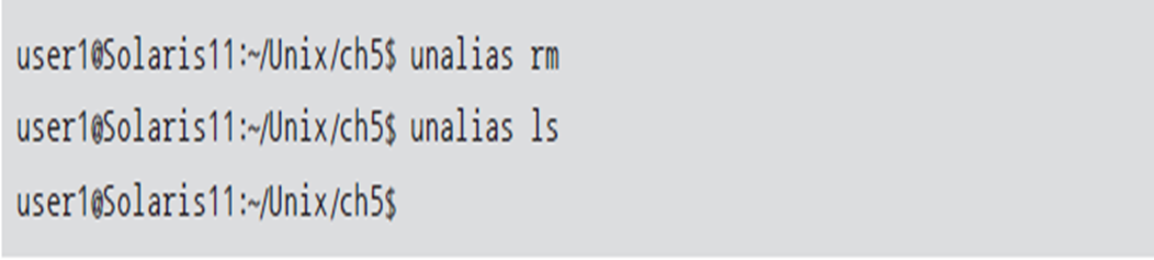 - 앨리어스를 삭제하기 위해서는 unalias 명령 사용