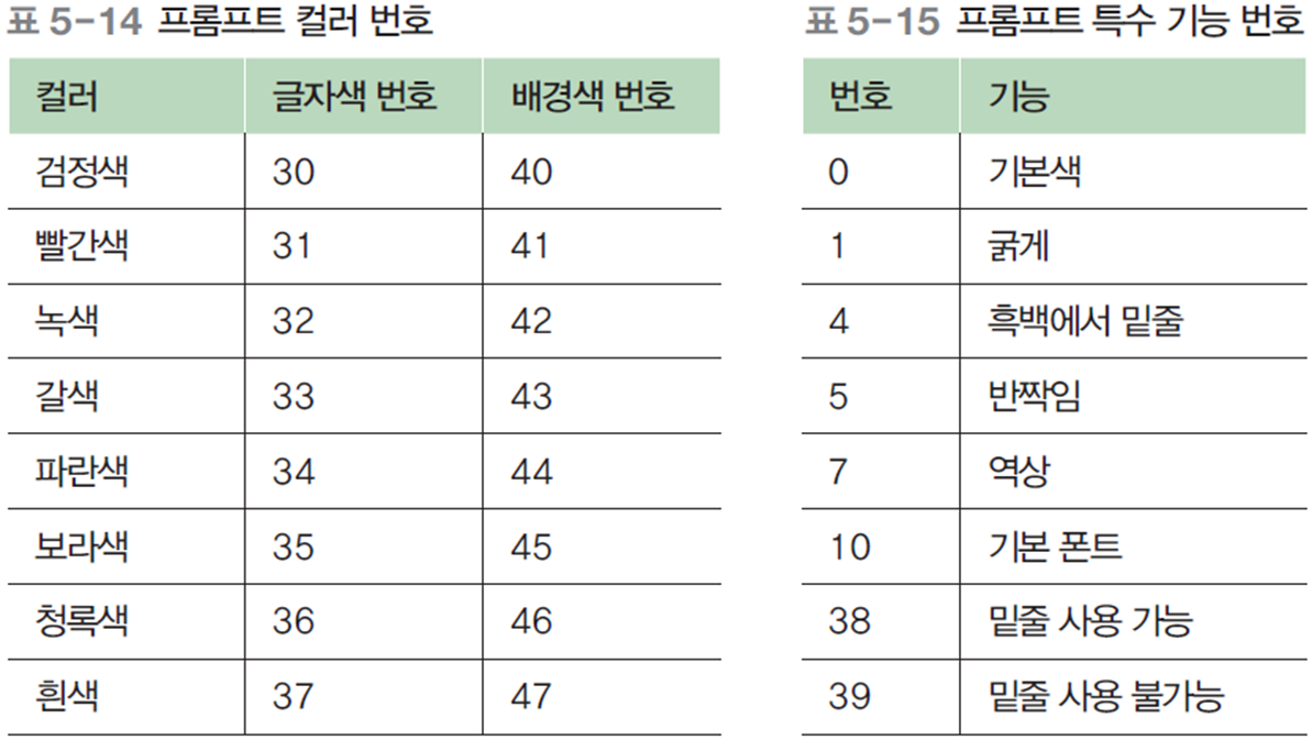 - ₩[ ~₩]: 이 사이의 문자들은 화면에 출력되지 않음