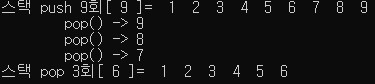 pop() : 스택 맨 위에 있는 요소를 삭제하고 반환함