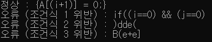 char s[4][80] = { "{A[(i+1)] = 0;}","if((i==0) && (j==0)",")dde(","B(e+e]" };